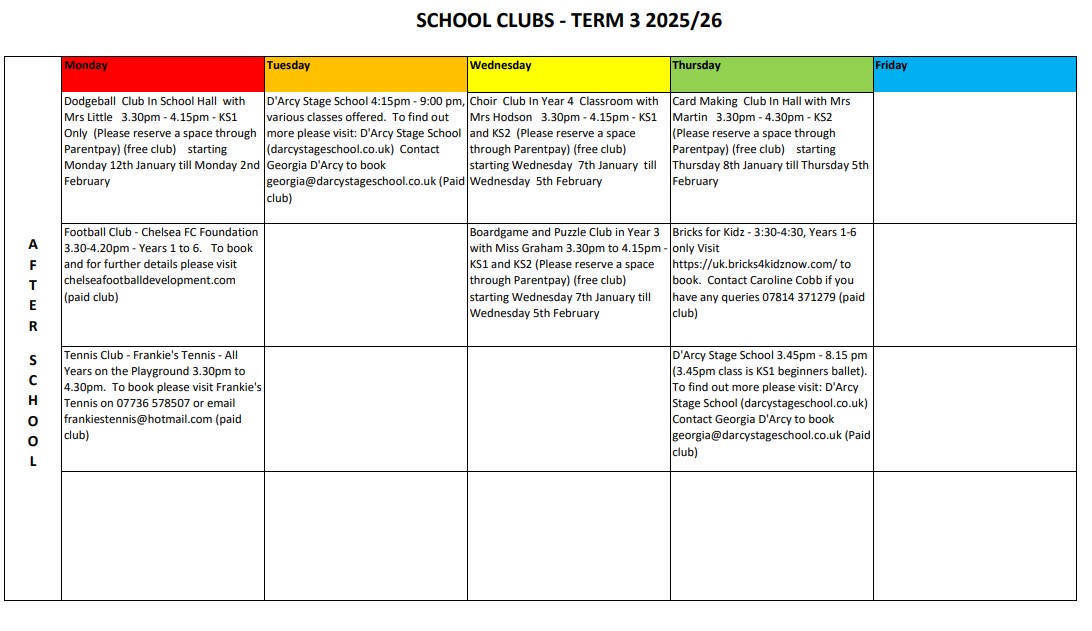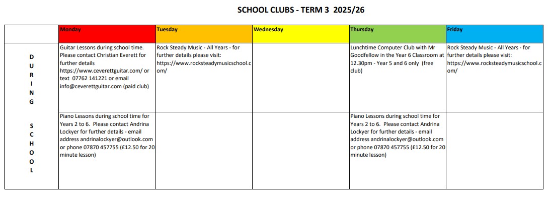 At Offham Primary School we are delighted to run a variety of different clubs to help our children to explore and develop their extra curricular interests. Please see below our Clubs for Term 3: